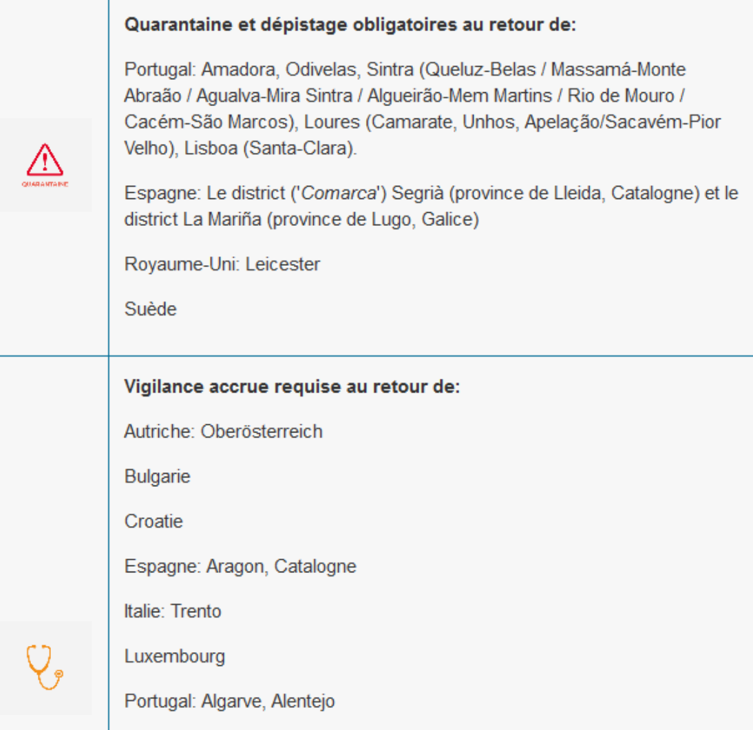 Esta é a lista dos destinos com restrições, atualizada este domingo, até o site do Ministério dos Negócios Estrangeiros belga ficar “offline”. (Publicada em Portugal pela TSF no seu site):