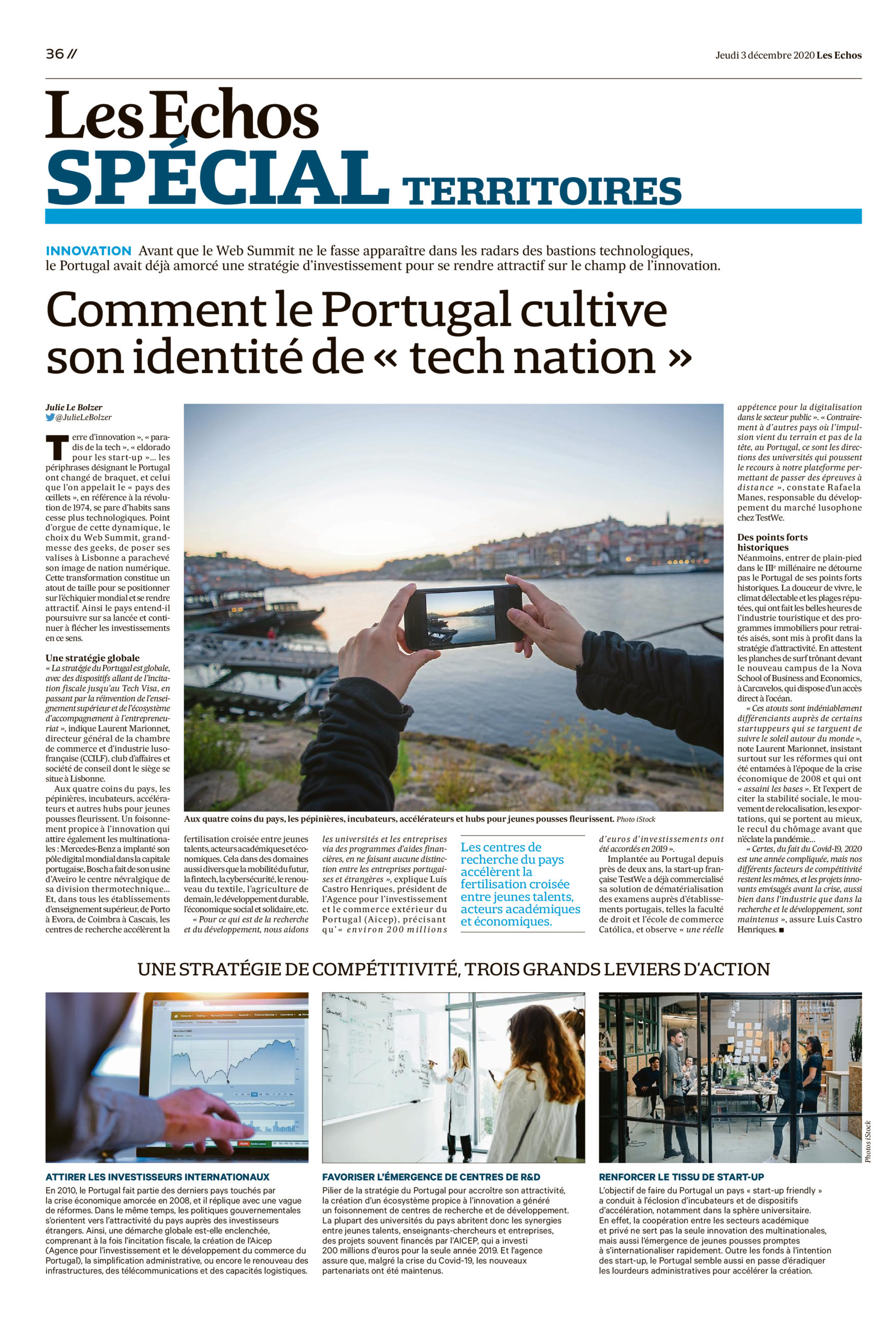 Suplemento de quatro páginas sobre Portugal publicado hoje no jornal francês Les Echos foi realizado com o apoio da Aicep.